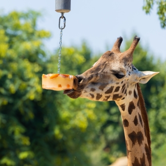 La alimentación es otro elemento clave que se tiene que adaptar durante los periodos de calor. Algunos ejemplos son la fruta congelada y los helados de caldo o de zumo de fruta que se ofrecen a los primates; los bloques de hielo con fruta para las jirafas; o los granizados de gusanos para las mangostas y las suricatas.