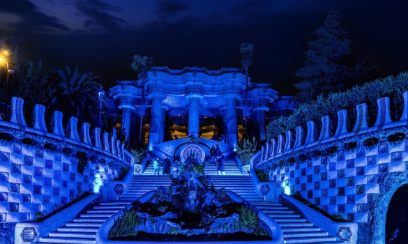 Imatge 09/02/2026 El Park Güell s’il·lumina de blau per donar la benvinguda al Barcelona 2026 Capital Mundial de l’Arquitectura Leer la noticia