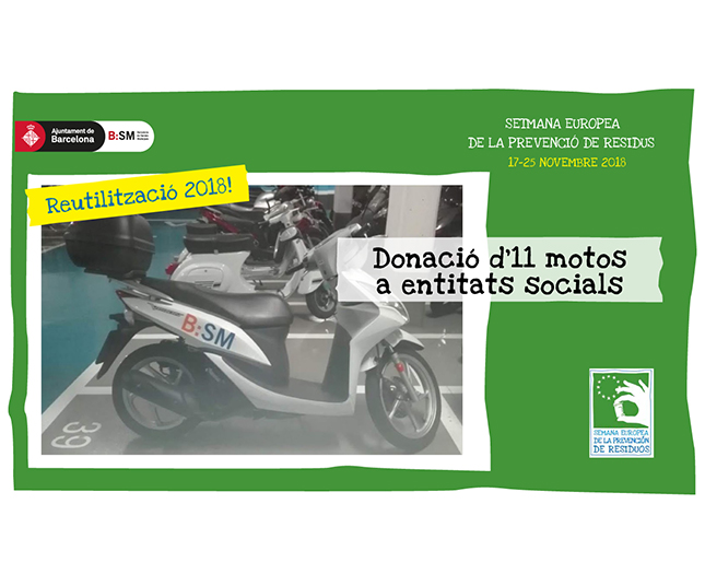 Barcelona de Serveis Municipals (B:SM) ha fet una donació d’11 motocicletes a la plataforma “Guanyem-hi” tots, un servei creat per la Federació Catalana de Voluntariat Social que gestiona donacions d’empreses, i també de particulars, perquè entitats socials puguin reaprofitar materials. D’aquesta manera els productes en bon estat poden tenir una segona vida i, per tant, es redueixen les emissions de CO2 perquè s’evita la destrucció dels materials.