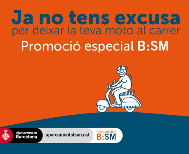 La xarxa d’Aparcaments B:SM ha engegat una campanya de foment per impulsar l’estacionament de motos als aparcaments subterranis municipals. D’aquesta manera els motoristes poden disposar d’instal·lacions segures i vigilades on poder aparcar el seu vehicle. Per tant d’incentivar l’ús de les places reservades per a motos als aparcaments subterranis, s’han posat en marxa promocions i abonaments especials per a cada zona on s’ha detectat una gran densitat de motos en superfície.