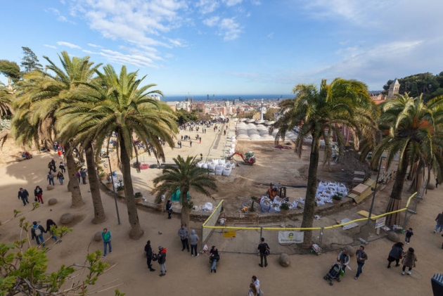 Aquesta setmana ha començat la segona fase de les tasques de restauració de la Plaça de la Natura, al Park Güell amb motiu de les obres de millora del sistema de drenatge de les aigües pluvials i la impermeabilització del sostre de la Sala Hipòstila. Per poder executar les obres de manera correcte, l’accés a la Plaça de la Natura i a la pròpia Sala Hipòstila ha quedat parcialment limitat. Per tal d’evitar al màxim les molèsties, el tancament de la Plaça de la Natura s’ha fet de manera longitudinal, d’aquesta manera els visitants poden accedir per la part dreta de la plaça i seguir observant el banc ondulat de Gaudí i les vistes sobre la ciutat. Les obres de restauració permeten, no obstant, gaudir d’una vista que habitualment no es pot veure, i us convidem a descobrir la part superior de les voltes de la Sala Hipòstila, que quedaran cobertes de nou una vegada finalitzin els treballs d’impermeabilització del sostre.Els accessos habituals al Park no han quedat afectats, i s’habilitarà un pas especial per a persones amb mobilitat reduïda.