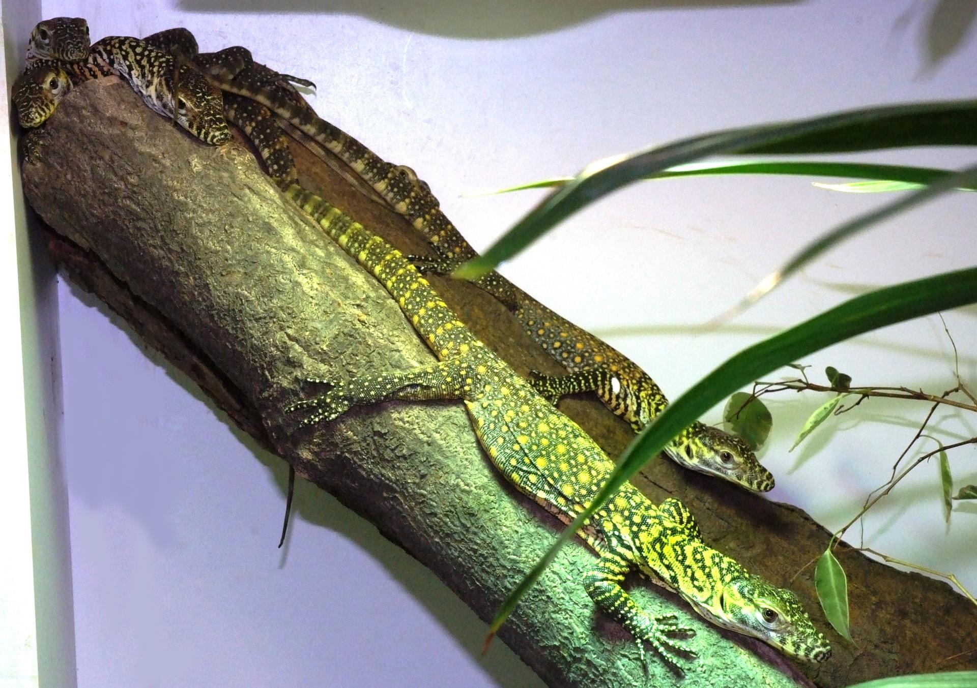 Ja han nascut 12 de les 14 cries i totes estan en perfecte estat.Caldrà una analítica genètica per saber si són mascle o femella.Des d’aquest matí, dos de les cries dels dragons de Komodo ja es poden veure a la seva instal·lació del Zoo de Barcelona. La resta de les cries nascudes, 12 fins al moment, s’aniran incorporant al Terrari, a mida que l’equip veterinari determini que els dragons de Komodo es desenvolupen amb normalitat. Només queden 2 ous més per eclosionar, ja que la posta que va fer la mare, Asmara, va ser de 14 ous.