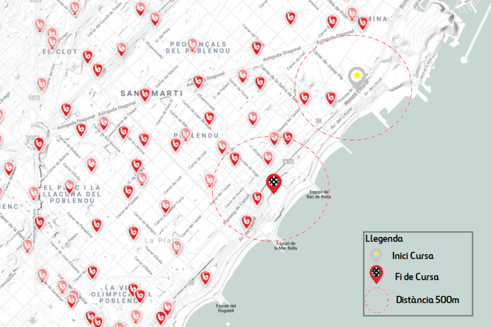 Amb motiu de la Cursa de la Mercè, els pròxims dies 19 i 20 de setembre, el Bicing realitzarà una prova pilot entre els seus abonats i abonades instal·lant una estació virtual i efímera al Fòrum. Aquesta prova pilot consisteix donar les màximes facilitats als inscrits a la Cursa de la Mercè perquè es puguin desplaçar amb el Bicing. Com que la zona de sortida de la cursa no disposa d’estacions properes, s’habilitarà un espai especial, senyalitzat i amb totes les garanties de seguretat i distància entre participants, on els abonats i abonades podran deixar la seva bicicleta de forma fàcil i segura. Aquest espai s’ubicarà al carrer Josep Pla a menys de 40 metres de l’inici de la cursa, i durant la prova pilot es podrà visualitzar a l’App. L’estació estarà disponible i en funcionament exclusivament durant la cursa, és dir des de les 7.00h fins les 11.00h durant els dos dies.Per tal de complir amb totes les mesures de seguretat i distància social, l’Institut Barcelona Esports (IBE), en col·laboració amb Barcelona de Serveis Municipals (BSM), habilitarà un espai de 330m2 que donarà cabuda a 150 bicicletes alhora i que garanteix: