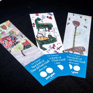 El Park Güell ha celebrat el primer concurs de punts de llibre “Sant Jordi i el drac del Park Güell” per els alumnes de primària de les 5 escoles de l’entorn (Baldiri Reixac, Reina Elisenda Virolai, Turó del Cargol, Montseny i Jesuïtes de Gràcia). Hi han participat 662 alumnes, que han presentat més un total de 534 treballs. S’han marcat tres categories segons l’edat dels alumnes. La guanyadora del 1r premi del cicle inicial és de l’escola Baldiri i Reixac i participava amb l’àlies de “Fox Star”, el primer premi del cicle mitjà se l’ha endut l’alumne darrera de l’àlies “Ardilla” de l’escola Turó del Cargol, i el de cicle superior és de l’escola Reina Elisenda Virolai i participava al concurs amb l’àlies “Chewie”.Els dibuixos guanyadors s’editaran en format de punt de llibre i es repartiran entre els treballadors del Park, els alumnes de les escoles participants i totes aquelles persones que visitin el Park Güell durant el cap de setmana de Sant Jordi. La finalitat d’aquesta acció és la de fomentar la creativitat i lectura dels alumnes de les escoles pròximes, i forma part d’un seguit d’activitats que tenen com a objectiu integrar el veïnat i les escoles de proximitat en el coneixement del Park. D’aquesta manera s’estrenyen lligams amb el barri i es posa en valor el Park Güell en un entorn cultural propi.
