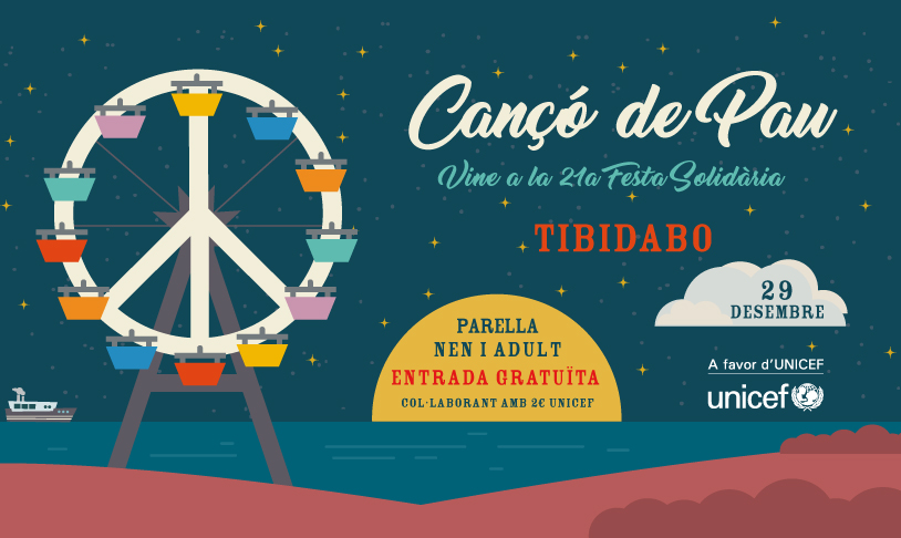 El divendres 29 de desembre tindrà lloc la 21a edició de “La Cançó de Pau”, la festa solidària més antiga del Tibidabo que té com a objectiu potenciar valors com la tolerància, la solidaritat i el respecte entre els més petits en un cant a favor de la Pau al món. En aquest dia especial podran gaudir del Parc gratuïtament totes les parelles formades per un adult i un nen o nena (fins a 14 anys) que entrin abans de les 11:30h i que aportin una donació de 2 euros per persona a favor d’UNICEF, entitat amb la que el Tibidabo té un conveni de col·laboració des del 2012.