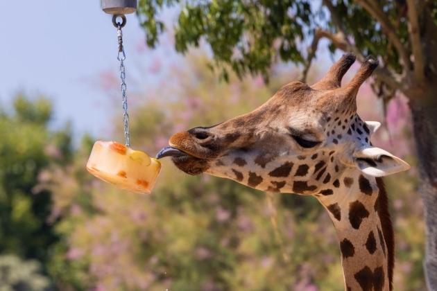 L’alimentació és un altre element clau que s’ha d’adaptar durant els períodes de calor. Alguns exemples són la fruita congelada i els gelats de brou o de suc de fruita que s’ofereixen als primats; els blocs de gel amb fruita per a les girafes; o els granissats de cucs per a les mangostes i els suricates.