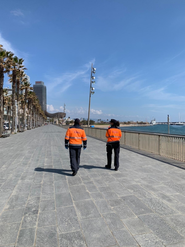 En plena col·laboració amb la Guàrdia Urbana, els Agents Cívics s’afegeixen al dispositiu municipal per tal de recordar a la ciutadania la necessitat d’evitar qualsevol desplaçament per la ciutat de Barcelona que no sigui indispensable, inicialment a parcs i platges.