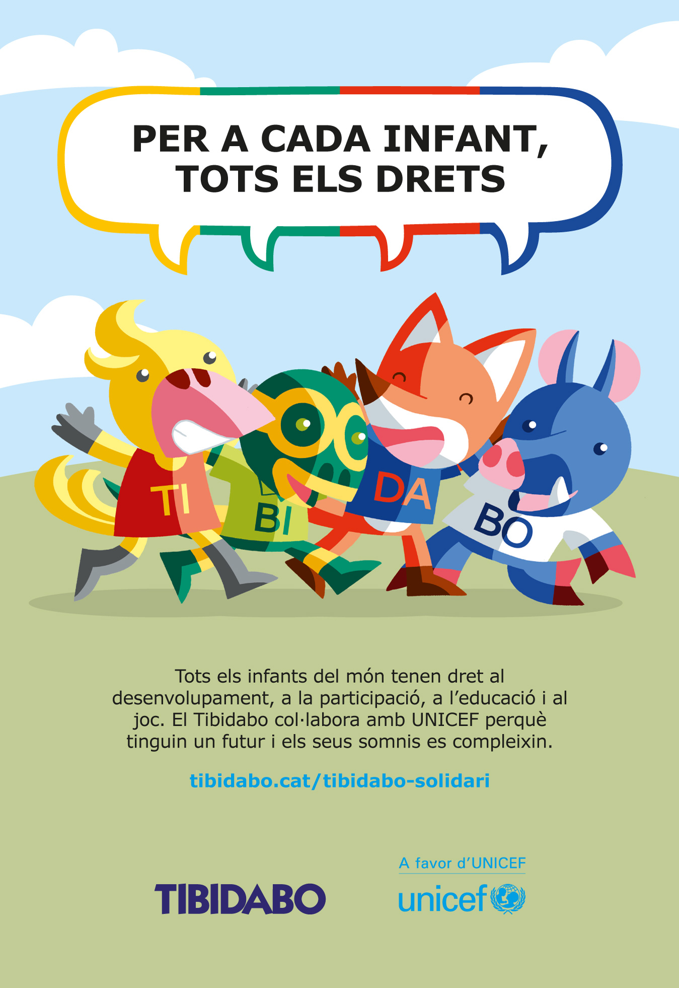 Jugar és un dret que tenen tots els nens, nenes i adolescents del món, tal i com ho recull la Convenció sobre els Dret de l’Infant en el seu article 31, i demà dia 28 de maig n’és el seu Dia Internacional. Amb motiu d’aquesta commemoració, UNICEF Comitè Catalunya i el Parc d’Atraccions del Tibidabo llancen la campanya #UnJocdeDrets protagonitzada per les Mascotes del Parc: en Ti, la Bi, la Da i en Bo.