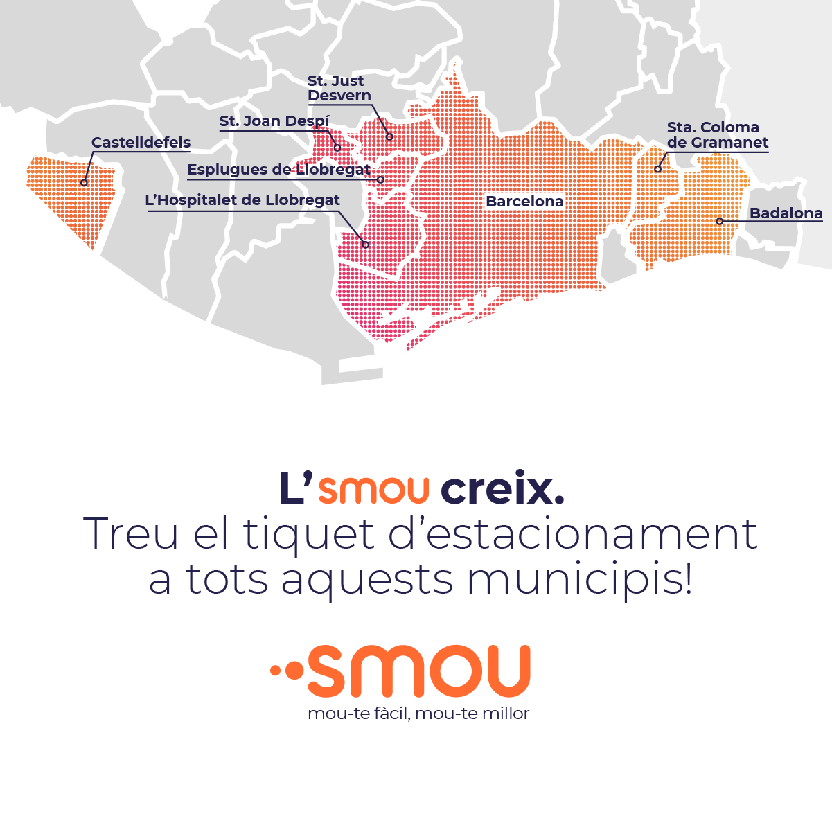 L’smou, l’app de mobilitat personal de Barcelona que uneix en un mateix espai diferents serveis de mobilitat, segueix creixent i amplia el seu abast incorporant Esplugues de Llobregat i Castelldefels. Així, a partir d’ara, els usuaris de l’app podran treure el tiquet d’estacionament en aquests dos municipis des del mòbil, de manera molt fàcil i còmoda i sense necessitat d’anar al parquímetre.D’aquesta manera, Esplugues de Llobregat i Castelldefels se sumen a la resta de municipis de l’àrea metropolitana que ja estaven disponibles a l’app smou: Barcelona, Badalona, l’Hospitalet de Llobregat, Santa Coloma de Gramanet, Sant Joan Despí i Sant Just Desvern. Això suposa un valor afegit pels usuaris i usuàries, que podran moure’s per totes aquestes localitats i pagar-ne l’estacionament regulat en superfície des d’una única aplicació al mòbil.