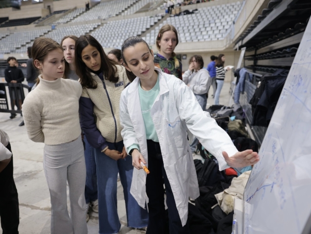 Durant tot el matí, el Palau Sant Jordi s’ha convertit en una gran aula de ciències on l’alumnat ha pogut gaudir d’activitats, tallers i espectacles relacionats amb matèries tan variades com la biologia, la química, la tecnologia, la física i les matemàtiques, entre d’altres.
