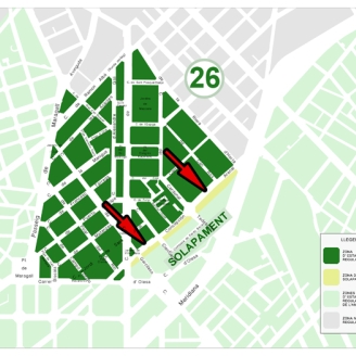 La zona 26 està delimitada pels carrers de Passeig Maragall, Ramon Albó, de la Riera d’Horta, Concepció Arenal i Olesa conformen la nova Zona 26 d’AREA