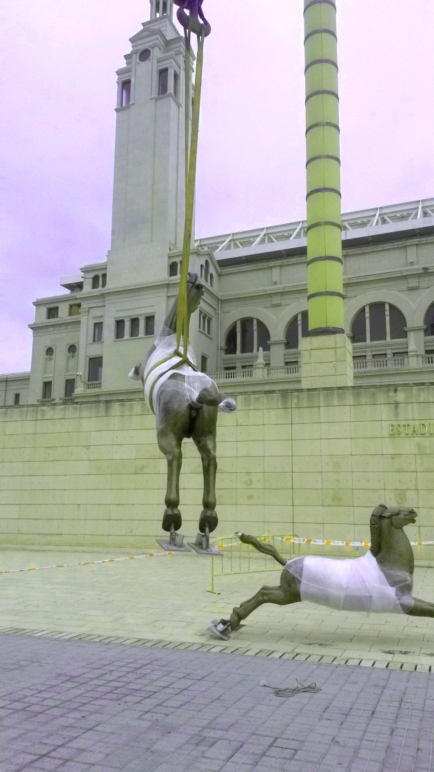 L’Ajuntament de Barcelona ha finalitzat avui el procés de restauració dels Aurigues olímpics, la rèplica de les escultures originals que als anys vint va fer l’escultor Pablo Gargallo. Les rèpliques es van fer l’any 1990, sota la direcció artística de Marta Polo, i es van col·locar coronant la façana del Estadi Olímpic de Montjuïc Lluís Companys quan se’n va fer la remodelació per als Jocs Olímpics del 1992.