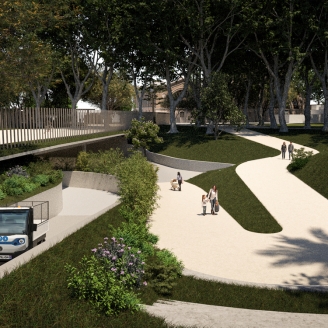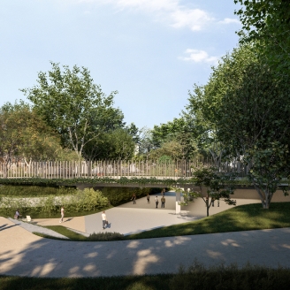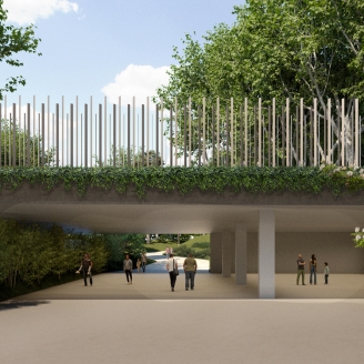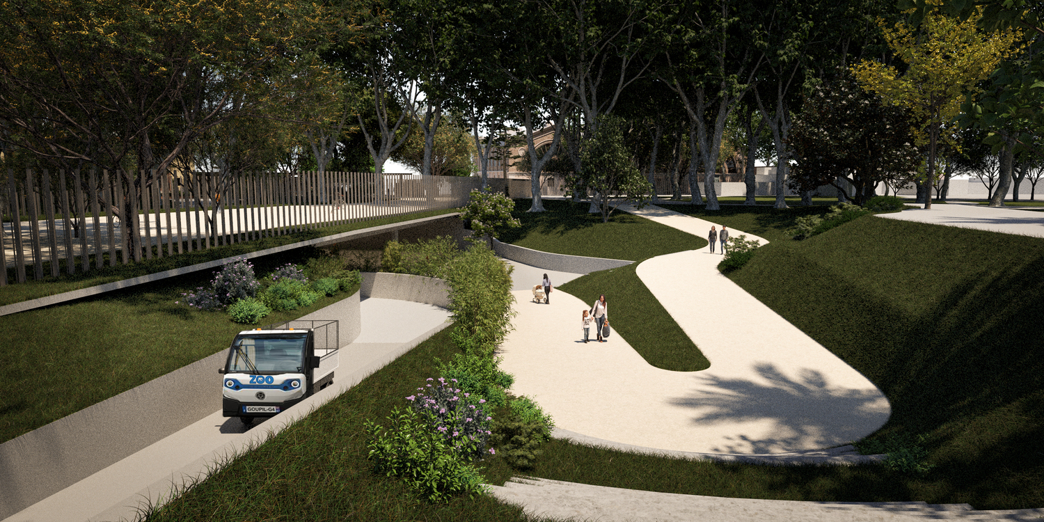 El nou accés preveu un ampli pas inferior per dins del Zoo, completament naturalitzat, que es fusionarà amb la resta del Zoo mitjançant un joc de rampes, escales i talussos verds que integraran l’arbrat existent i nova vegetació. Es garantirà, d’aquesta manera, el flux de visitants per l’interior del Zoo.