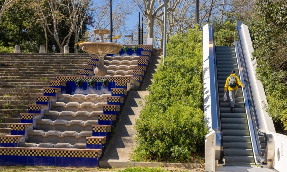 Imatge 03/04/2025 En marxa el primer tram de les noves escales mecàniques del Parc de Montjuïc Llegir la nota de premsa